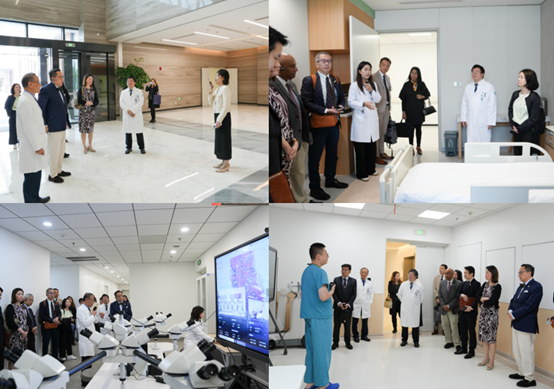 The NUS delegation conducted an on-site visit to various facilities including the Central Laboratory, International Healthcare Center, Outpatient Pharmacy, Smart Logistics System, Intensive Care Unit (ICU), and Department of Pathology. During the visit, they experienced the organ-centered one-stop outpatient service and the full-process guided diagnosis and treatment service system. The delegation gained in-depth insights into FAHZU's integrated patient diagnosis and treatment model and multi-disciplinary joint clinic, fully experiencing the efficient and convenient medical service empowered by digitalization.